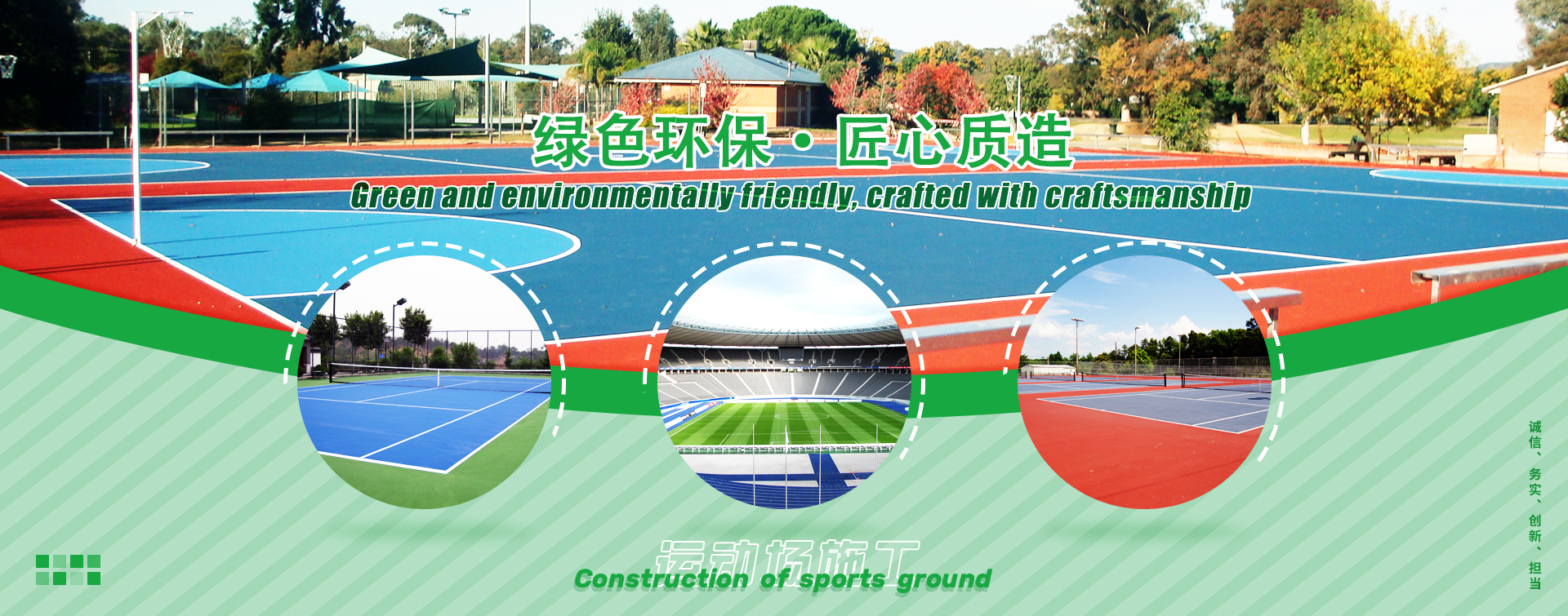 公司產品遍及北京、天津、河北、山東、河南、陜西、內蒙、山西、遼寧,吉林、黑龍江、甘肅、安徽、江蘇、寧夏、新疆等全國二十多個省、市、自治區。工程承包范圍及主要產品:丙烯酸球場,硅PU球場,半預制球場,全預制球場,透氣型跑道,混合型跑道,全塑型跑道,半預制型跑道,全預制跑道,人造草坪足球場、幼兒園EPDM顆粒塑膠地面、運動場地圍網、燈光配套設施、幼兒園室外操場、景觀人造草坪、等等地坪材料···